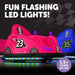 - Lights & Action: Fun, exciting flashing LED lights glow bright. Watch your child’s face light up as they drive and bump their way all around the hous
