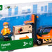 Goods and cargo are coming and going with trains and trucks from all directions. Is there too much to handle? No, not with Use this detailed forklift and helpful driver. Lift the loads up, down, off and on trains and trucks with ease. The poseable figure fits perfectly inside the driver´s seat. This item includes 1x Forklift, 1x Playfigure, 1x Cargo, 1x Container and measures 11.2 x 3.3 x 9.6cm
