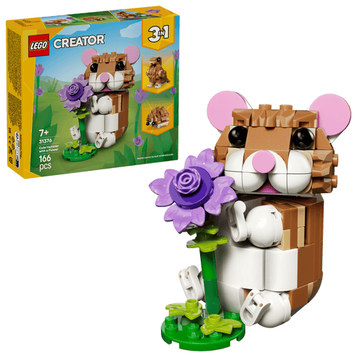 Animal-loving girls and boys ages 7 and up can play out fun stories with this LEGO® Creator 3 in 1 Cute Hamster with a Flower (31376) building t...