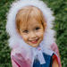 Lush fabric is printed with two toned glittering diamond flecks, trimmed with silver bias for even more shine. The hood is sized to drape nicely, and is trimmed in soft white marabou. The neck fastens with a Velcro closure and features a large gem and satin bow.