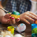 EVERYTHING YOU NEED TO PAINT YOUR OWN CUTE SQUISHY EASTER EGGS: Complete kit includes 6 blank super-squishy eggs, 2 paintbrushes, and 6 fabric paint vials.